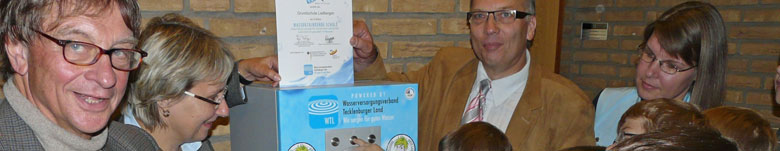 Bild 1: Schüler der Schule am Aasee aus Ibbenbüren, mit einer Trinkflaschenspende des WTL