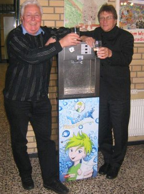 Bild 2: Schulleiter Klaus Jahn (Schule am Aasee) im Rahmen einer Spendenübergabe durch Reinhold Hemker, die zur Finanzierung der TRINX Frische-Quelle genutzt wurde.